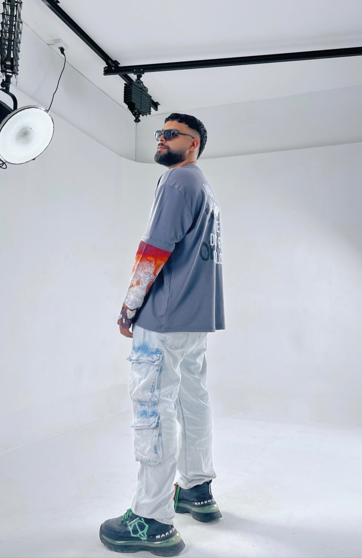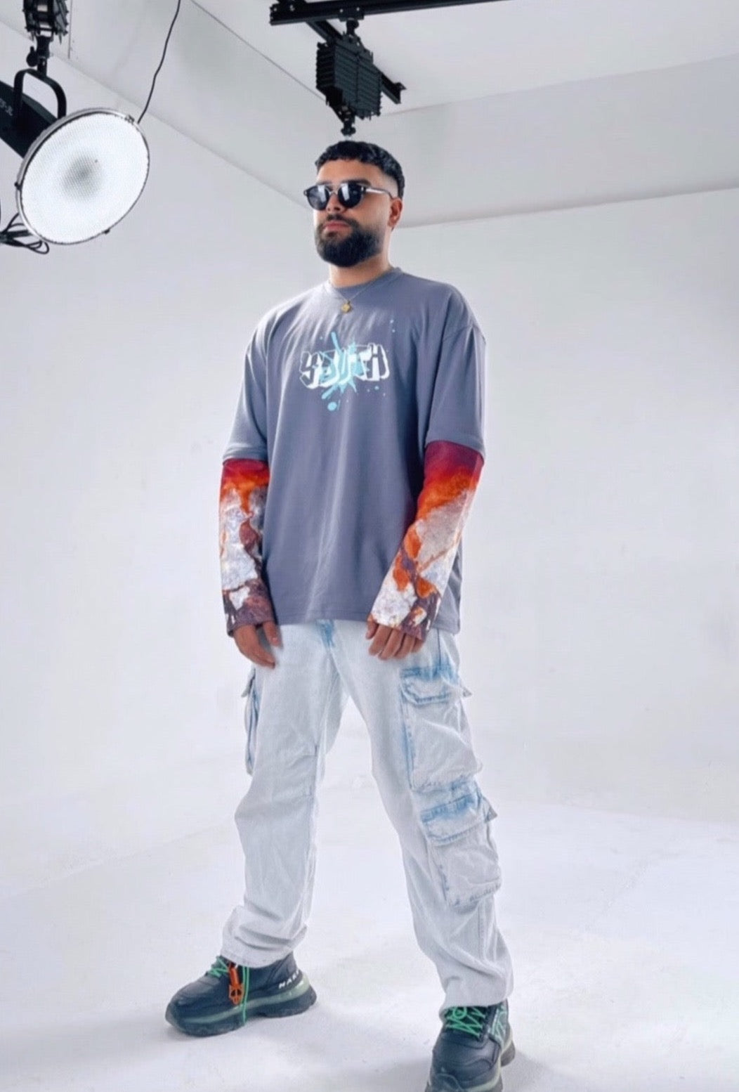 - both male and female models are wearing size M